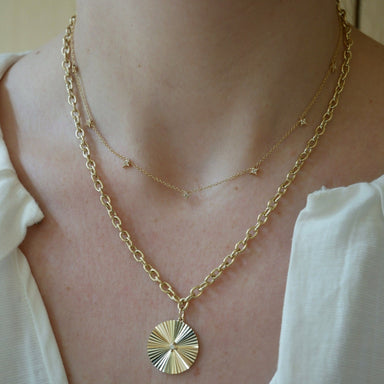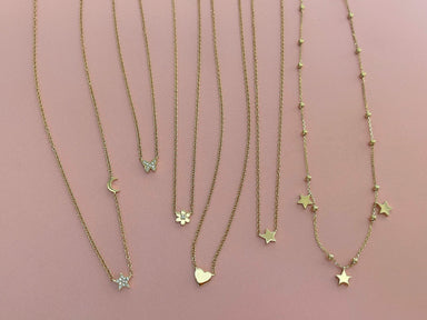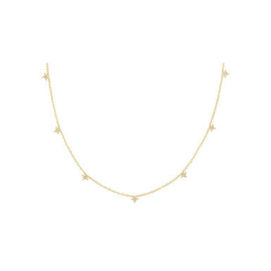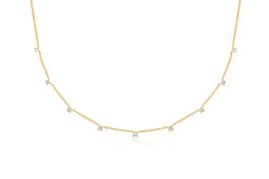 View full detailsDiamond weight: 0.08 carats Sparkle height: 4.5 mm Sparkle width: 4.5 mm Space between sparkles: 1" Necklace length: 14-14.75-15.5" Set on our Gol...