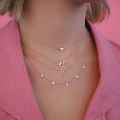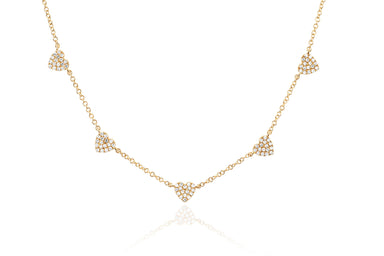 Our 5 mini diamond heart necklace features 0.22 carats of pave diamond set in 14k gold. Each heart measures: 4.5mm Adjustable chain length measur...