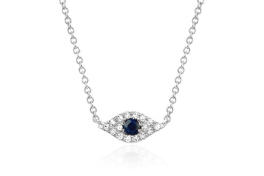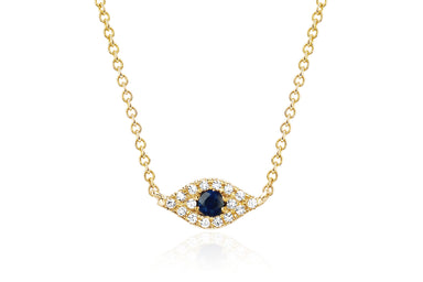 View full detailsOur diamond evil eye choker that features a 0.08 carat blue sapphire center stone surrounded by 0.05 carats of pavé diamond set in 14k gold. Total...