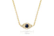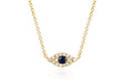Our diamond evil eye choker that features a 0.08 carat blue sapphire center stone surrounded by 0.05 carats of pavé diamond set in 14k gold.