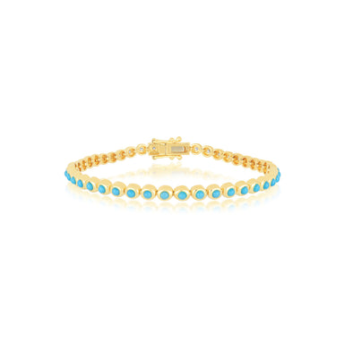 Diamond weight: 0.28 carats Turquoise weight: 0.94 carats Pillow shape size: Ranges from 3 - 4 mm Bracelet length: 6.5" Finished with a box clasp ...