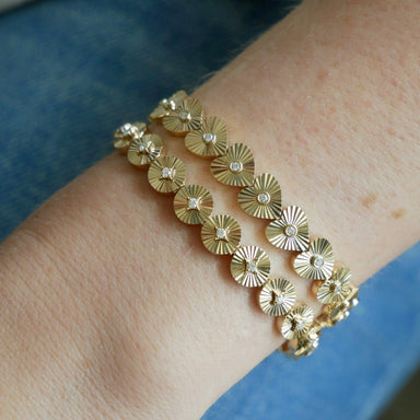 View full detailsDiamond weight: 0.39 carats Disc shapes length: 7 mm Disc shapes width: 7 mm Bracelet length: 6.5" Finished with a box clasp Diamonds are SI1-SI2 ...
