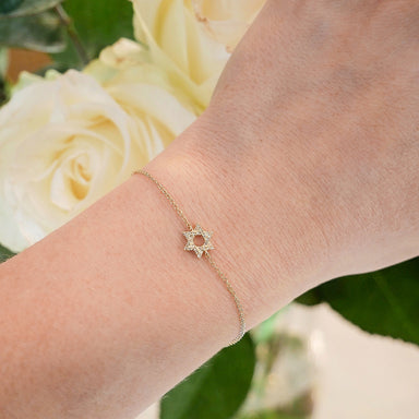 View full detailsDiamond weight: 0.07 carats Star of David length: 9 mm Star of David width: 8 mm Bracelet length: 6” plus 1” of adjustable chain Set on our clas...