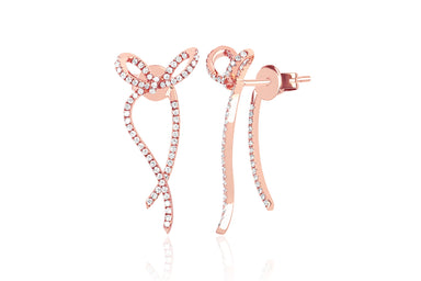View full detailsOur diamond bow earring features 0.34 carats of diamond set in 14k gold. Total earring width measures: 11.5mm Total earring height measures: 25m...
