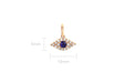 Our diamond evil eye with blue sapphire necklace charm features 0.06 carat of diamonds and a single blue sapphire (0.14 tcw) set in 14k gold.