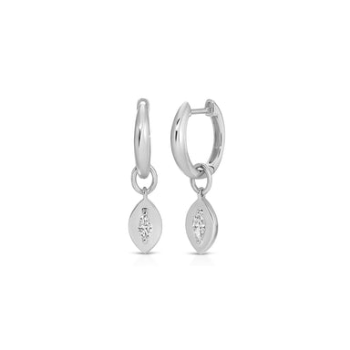 Gold Frame Round Diamond Huggie Charm on Gold Dome Huggie Earring