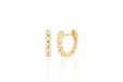 With a row of five glistening bezel diamonds, this miniature huggie earring brings sparkling flair to any ensemble. It features 0.09 carats of diamond set in your choice of gleaming 14k yellow, rose, or white gold.
