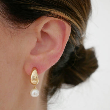14K 2.28 GM, 2 RPF 1.35 GM, PEARL 8 MM OUTER DIAMETER 15 X 8 MM, INNER DIAMETER TOTAL LENGTH 25 MM PAIR YELLOW, ROSE GOLD