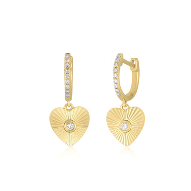 View full detailsDiamond weight: 0.10 carats for the pair Huggie outer diameter: 12 mm Huggie inner diameter: 8 mm Heart drop: 8 x 8 mm Finished with a latch closu...