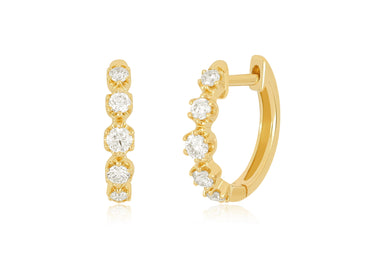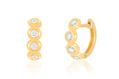 View full detailsThe Diamond Bezel Shimmy Huggie Earring features 6 bezel drop diamonds per earring and is available in 14k yellow gold. 0.98 grams of gold Diamond...