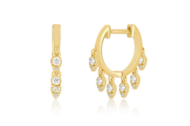 The Diamond Teardrop Shimmy Huggie Earring features 6 teardrop diamonds per earring and is available in 14k yellow gold. 1 gram of gold per earrin...