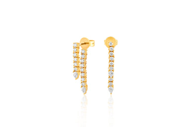View full detailsOur diamond teardrop fringe earring features 0.21 carats of diamond set in 14k gold. Top fringe length: 12mm Bottom fringe length: 17mm Available...