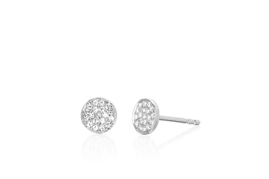 Our diamond disc stud earrings feature 0.36 carats of diamond set in 14k gold. Disc diameter measures: 8mm