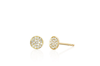 Our diamond mini disc stud earring features .14 carats of diamond set in 14k gold. Sold as a pair