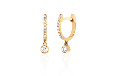 View full detailsAn everyday essential, this mini huggie earring is crafted with a row of sparkling pavé diamonds and accented with a single diamond teardrop that h...