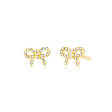 View full detailsOur diamond bow earring features 0.34 carats of diamond set in 14k gold. Total earring width measures: 11.5mm Total earring height measures: 25m...
