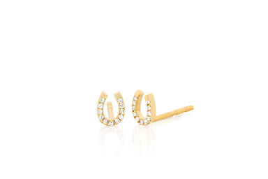 View full detailsOur diamond mini horseshoe stud earring features 0.06 carats of diamond set in 14k gold. Horseshoe height measures: 5.5mm Horseshoe width measur...