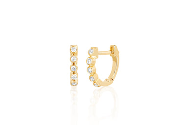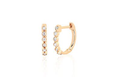 View full detailsWith a row of five glistening bezel diamonds, this miniature huggie earring brings sparkling flair to any ensemble. It features 0.09 carats of diam...