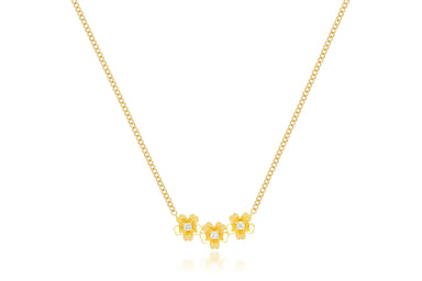 Diamond and Gold Triple Mini Cherry Blossom Necklace