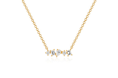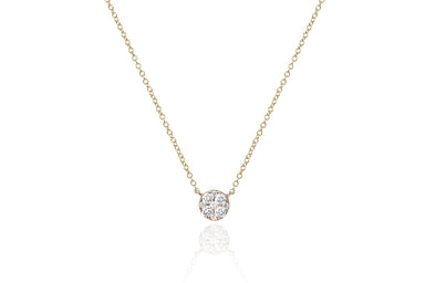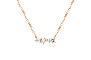 View full detailsOur multi faceted diamond mini bar necklace features 0.05 carats of diamond set in 14k gold. Diamond cluster measures: 11mm Total chain length: 1...