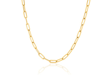 Necklace length: 18" Individual links: 4x11 mm Finished with a lobster clasp Available in hollow 14k yellow gold