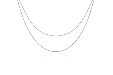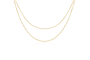 View full detailsThe Double Strand Liquid Gold Necklace is a delicate gold 13.5-inch chain with a 1-inch extender set in 14k yellow or rose gold.