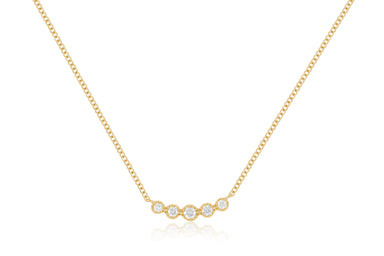 View full detailsThe Diamond Crown Crescent Necklace features 5 round diamonds and is available in 14k yellow gold. 5 Bezel Diamonds Diamond Diameter: First: 1.6...