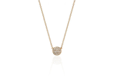 View full detailsOur mini diamond disc necklaces features 0.07 carats of diamond set in 14k gold. Disc diameter measures: 4mm Adjustable chain length: 18"(16" + ...