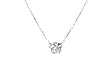 View full detailsOur diamond rose necklace features .11 carats of diamonds set in 14k gold. Chain length measures: 16-18"