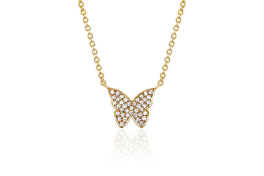 View full detailsOur diamond butterfly necklace features 0.12 carats of diamond set in 14k gold. Butterfly width measures: 9mm Butterfly height measures: 7.5mm Ad...