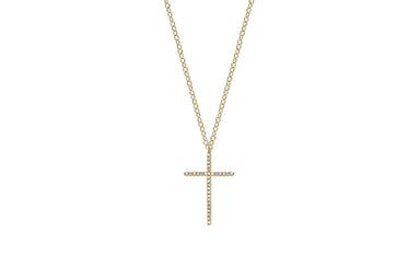 Our diamond cross necklace features 0.04 carats of diamond set in 14k gold. Cross height measures: 10mm Cross width measures: 7mm Total chain len...