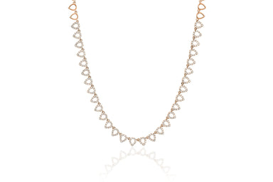 View full detailsOur 5 mini diamond heart necklace features 0.22 carats of pave diamond set in 14k gold. Each heart measures: 4.5mm Adjustable chain length measur...