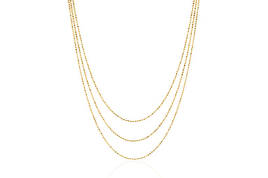 View full detailsOur hasson triple layered chain necklace is set in 14k gold. 1st chain length measures: 13.5” 2nd chain length measures: 14.5” 3rd chain length m...