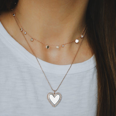 Diamond weight: 0.26 carats Heart width: 6 mm Necklace length: 14-14.75-15.5"" Set on our Gold Chain Necklace Finished with a spring clasp Diamon...