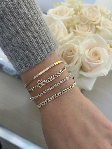 View full detailsDiamond weight: 0.52 carats -0.84carats depending on the number of letters chosen Bracelet length: 6.5" Individual links: 6 mm Finished with a box...