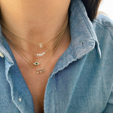 View full detailsOur diamond initial necklace charm features 0.03 carats of diamond set in 14k gold. Initial height measures: 5.5mm Typically stocked initials: A,...