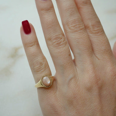 Diamond weight: 0.07 carats Pink Mother of Pearl weight: 1.09 carats Pink Mother of Pearl stone height x width: 8 x 6 mm Diamonds are SI1-SI2 clar...